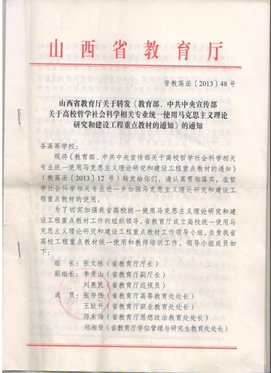 山西省教育厅关于转发《教育部、中共中央宣传部关于高
