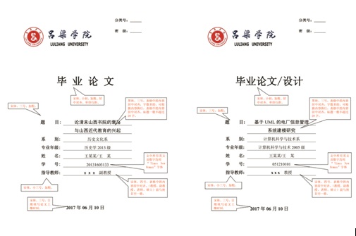 (一)毕业论文(设计)文本用word进行编辑,封面模板学校统一设计,文本格式按照《吕梁学院毕业论文(设计)模板》(见附件),同时废止《通知》中的模板。因专业特色对格式有特殊要求的由系(部)制定具体要求及模板(如毕业设计说明书具体要求及模板),并交教务处备案。